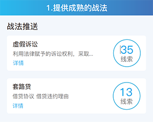 系統(tǒng)提供成熟的戰(zhàn)法,此些戰(zhàn)法是在其他檢察院成功運用的戰(zhàn)法,在實踐中檢驗的,也支持用戶修改內(nèi)容適合本地區(qū)特點。